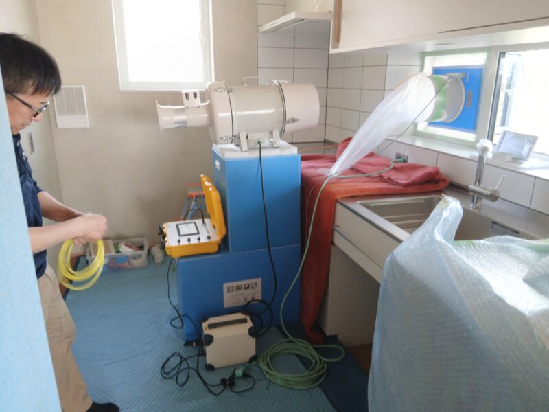 昨日は月末引き渡し予定住宅の完了検査と気密度測定をおこないました。